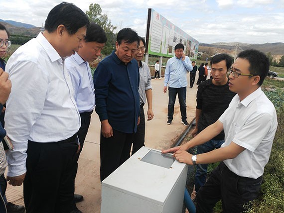 10月19日-21日,,,,,,,,吴忠市利通区水务局局长杨汉清、建管站站长杨文贤、扁担沟扬水站站长余长虹一行到云顶国际vip.888节水集团承建的元谋县丙间大型灌区11.4万亩高效节水浇灌PPP项目举行调研考察。。。。。。。集团公司副总裁刘伟芳、武威公司董事长王立军、西南公司总司理贾林等全程陪同考察。。。。。。。