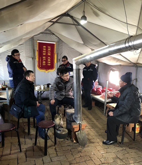 天天早晨,,,,,,陪同着阵阵冷气,,,,,,项目施工职员用从远处打来的带着冰碴的水,,,,,,草草的洗漱事后就最先了新的一天的事情。。。。。从驻地到施工现场,,,,,,多为过膝深的积雪,,,,,,就是这样的路途,,,,,,项目施工职员天天要走好几里。。。。。他们认真检查每个装备的零部件,,,,,,严酷每一道施工程序,,,,,,举行装备装置、管道检查。。。。。他们心里只有一个念头:白天一定要把事情做细、做扎实,,,,,,保质保量、保进度。。。。。白天凭证施工进度,,,,,,完成施工使命,,,,,,才华享受一个“优美”的夜晚,,,,,,由于不必在夜里加班,,,,,,想象一下这样的天气在夜里加班是个怎么样的滋味,,,,,,而这样的滋味他们也是经常要品尝的。。。。。