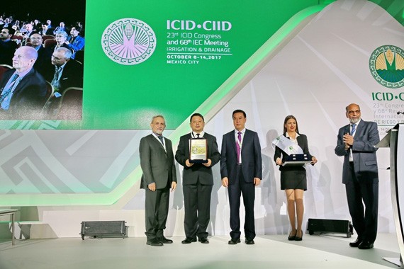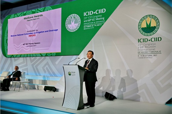 ▲国际灌排委员会声誉主席高占义主持国际灌排委员会节水奖颁奖仪式