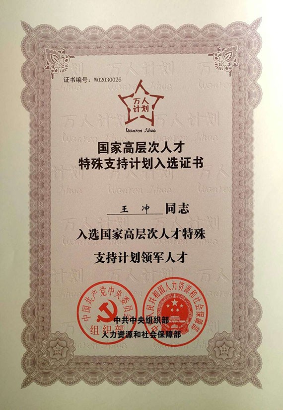 云顶国际vip.888荣耀|集团公司党委书记王冲获颁国家高条理人才特殊支持妄想领武士才证书