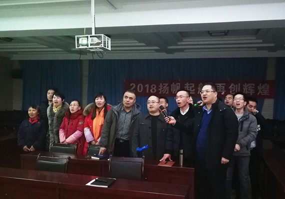 聚会最后 ,,,,,,,与会的千名干部职工全体起立 ,,,,,,,齐声高喊"2018扬帆起航 再创绚烂"聚会主题 ,,,,,,,回声响彻会场 ,,,,,,,聚会取得圆满乐成。。。。。。