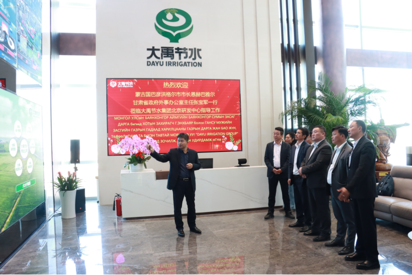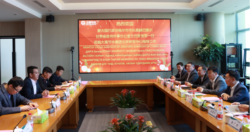 10月18日上午,,,,,,,,蒙古国巴彦洪格尔市市长恩赫巴雅尔(Enkhbayar)、巴彦洪格尔市呼拉尔公民代表主席巴图才仁(Battseren)、巴彦洪格尔输电配电公司执行董事乌兰巴雅尔(Ulambayar);;;;;甘肃省政府外事办党组书记、办公室主任张宝军,,,,,,,,省政府外事办党组成员、对外友协专职副会长梁保平,,,,,,,,省对外友协友城事情随处长康广宏一行向导莅临云顶国际vip.888节水集团北京研发中心考察座谈,,,,,,,,云顶国际vip.888节水集团党委书记王冲等陪同。。。。。。。