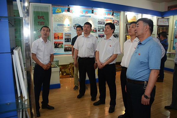 ▲调研组一行在云顶国际vip.888节水集团公司综合展厅考察调研