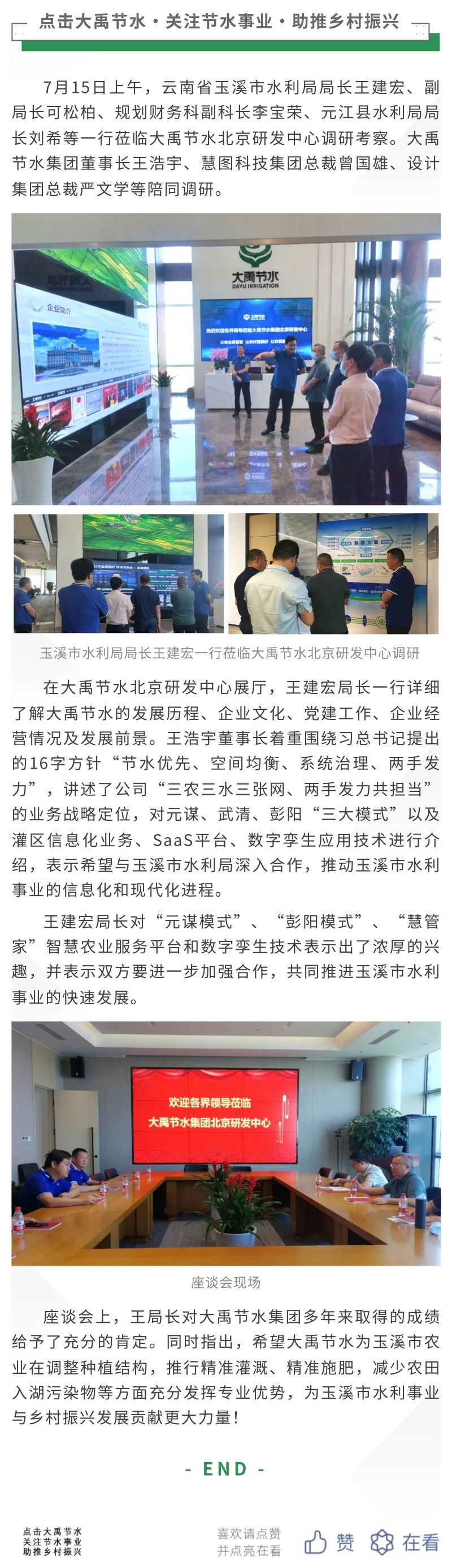 云顶国际vip.888动态| 云南省玉溪市水利局局长王建宏一行莅临云顶国际vip.888节水北京研发中心调研考察