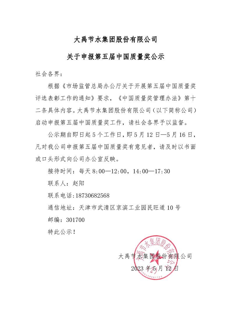 云顶国际vip.888关于申报第五届中国质量奖公示