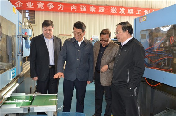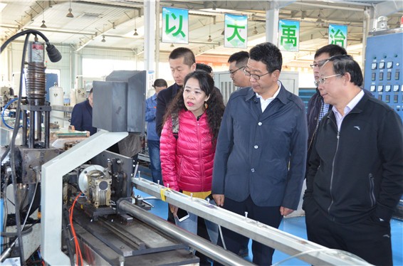 云顶国际vip.888节水集团公司党委书记、副董事长王冲,,,,,,,,董事长王浩宇,,,,,,,,总裁谢永生等公司向导陪同内蒙古呼伦贝尔市水利局向导一行在滴灌(管)带生产车间旅行考察