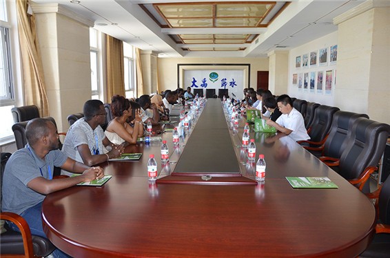 云顶国际vip.888节水(天津)有限公司常务副总司理潘钰、云顶国际vip.888研究院副院长战国隆等公司向导陪同刘媛副处长及吉布提共和国官员一行在聚会室召开座谈会