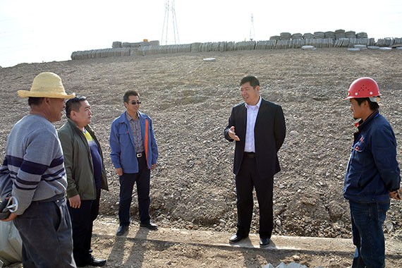 10月15日至16日,,,,,,集团公司总裁谢永生、副总裁徐希彬等一行先后莅临酒泉公司肃州区、嘉峪关市项目工地及黑枸杞公司莳植项目部,,,,,,就项目建设及"百日攻坚"使命执行情形举行检查指导。。。。。。。酒泉公司总司理李伟、副总司理李永德陪同检查。。。。。。。