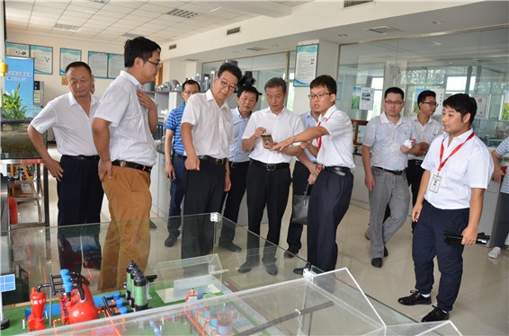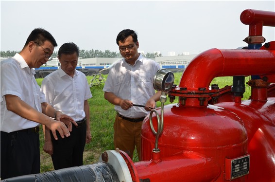 云顶国际vip.888节水集团公司党委书记、副董事长王冲,,,,,,,,董事长王浩宇陪同吴盛海局长一行在公司自主研爆发产的自动化施肥过滤器实验区旅行