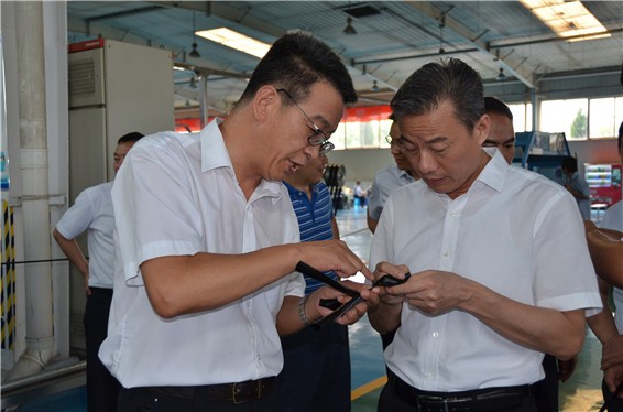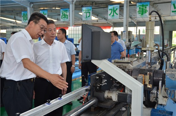 吴盛海局长一行在云顶国际vip.888节水公司滴灌生产车间,,,,,,,,相识公司产品研发、生产情形
