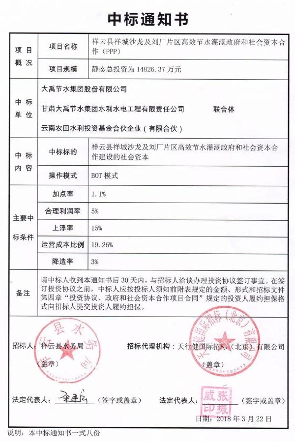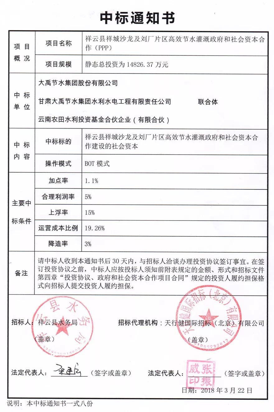1.48亿!云南高效节水浇灌新篇章!云顶国际vip.888节水中标祥云县祥城沙龙及刘厂片区高效节水浇灌政府和社会资源合作(PPP)项目