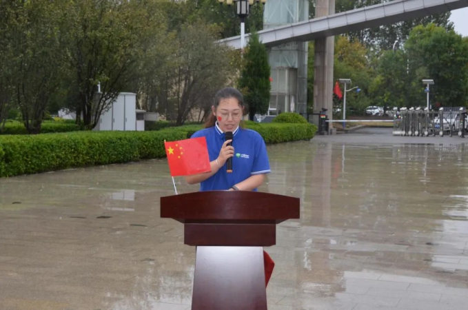 上午9时整,,,,,,,,庄重的升旗仪式正式最先。。。 。。。12名护旗头迈着铿锵有力的程序划分护送国旗、司旗入场,,,,,,,,伴着雄壮激昂的《义勇军举行曲》,,,,,,,,鲜艳的五星红旗迎风睁开、冉冉升起。。。 。。。全体职员排队肃立,,,,,,,,行注目礼,,,,,,,,齐声高唱国歌,,,,,,,,向五星红旗致以最高尚的敬意,,,,,,,,向伟大祖国表达无限热爱和真挚祝福。。。 。。。