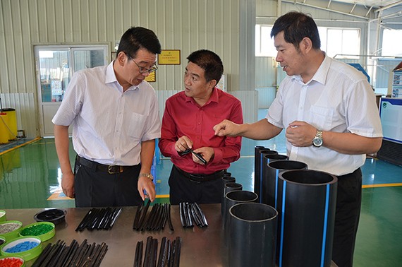 俄吞副州长一行先厥后到公司生产车间、试验田、实验室实地考察。。。。。。。在生产车间展板前王冲就公司生长历程、取得的声誉资质、国际营业开展情形等逐一做了先容。。。。。。。俄吞副州长现场相识了滴灌管等产品的生产工艺及生产流程。。。。。。。在试验基地,,,,,,俄吞副州长一行认真听取了王冲就过滤系统、喷灌系统及污水处置惩罚装备的详细先容,,,,,,俄吞副州长对智能化田间浇灌管理系统很感兴趣,,,,,,在浇灌系统模子前亲自使用手机举行操作演示。。。。。。。