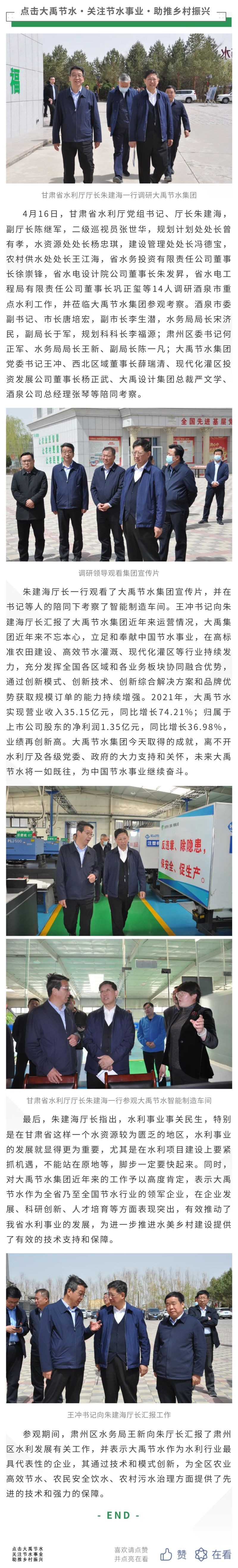 云顶国际vip.888动态| 甘肃省水利厅厅长朱建海带队考察省重点水利工程莅临云顶国际vip.888节水旅行调研