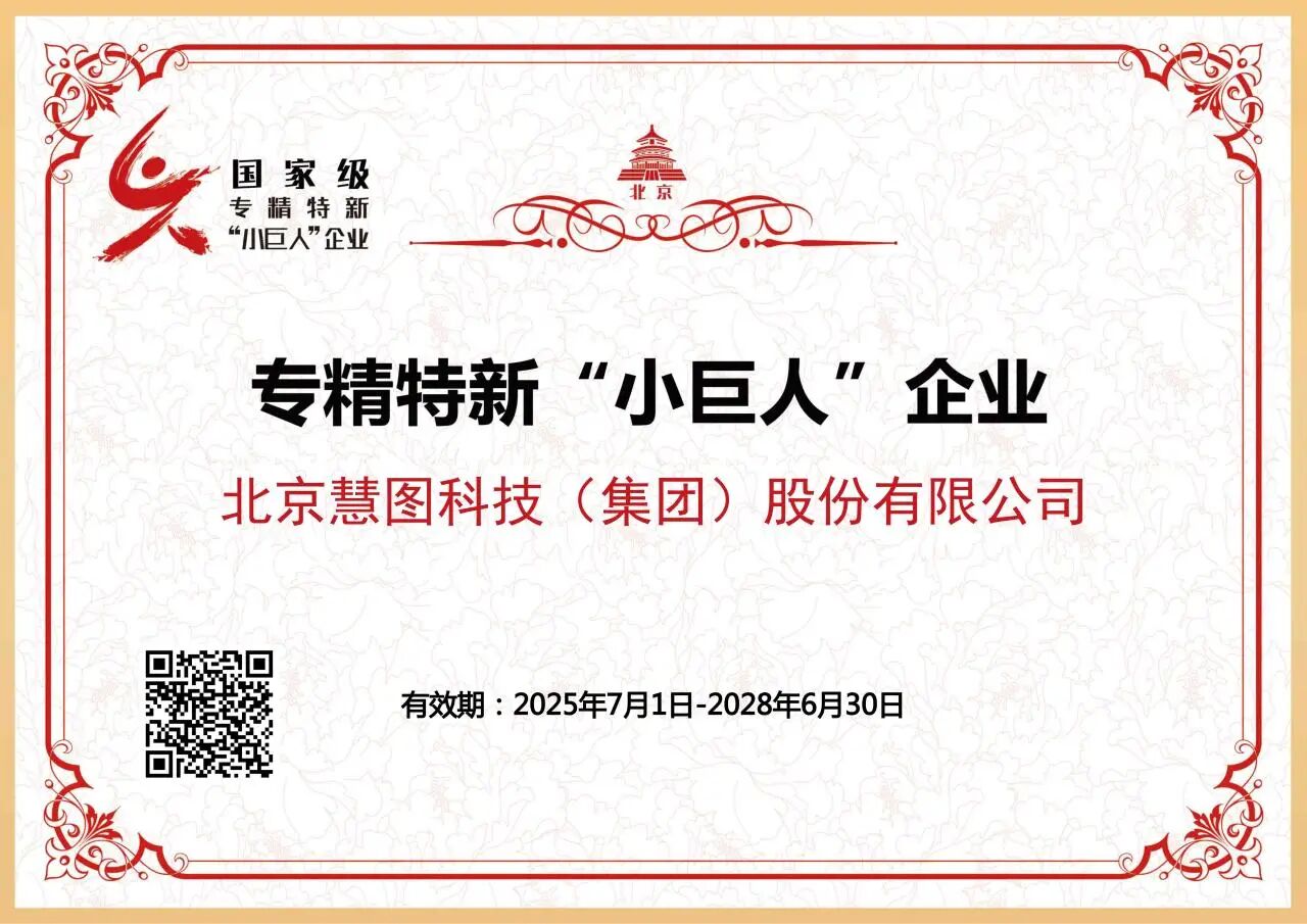 专精特新“小巨人”企业是国家为勉励中小企业实现专业化、细腻化、特色化、新颖化生长而设立的声誉称呼。。。。。此次评选,,,,,,,,慧图科技依附其在科技研发、产品立异、市场开拓等方面的突出体现,,,,,,,,乐成入选,,,,,,,,有用期为2025年7月1日至2028年6月30日。。。。。